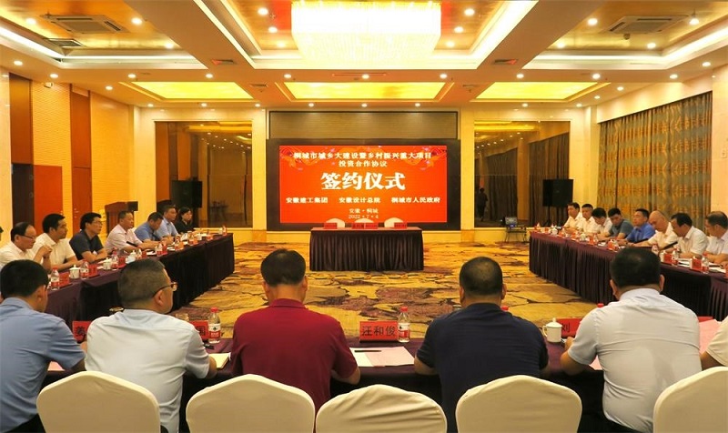 近日,由集团股份公司联合安徽设计总院联合中标的桐城市城乡大建设暨乡村振兴重大项目投资合作协议签约仪式在桐城举行。集团股份公司党委副书记、董事、总经理李有贵,桐城市市委副书记、市长刘存磊,安徽设计总院总裁助理、生产运营中心主任过年生出席仪式并致辞,桐城市委常委、副市长章友厚主持仪式。集团股份公司副总经理、安建投资总经理、安建和顺地产集团董事长朱忠明,安徽设计总院业务总监、建设投资公司总经理、交设建设公司董事长梅应华,桐城市委常委、常务副市长桂稳成分别代表三方签署投资合作协议。