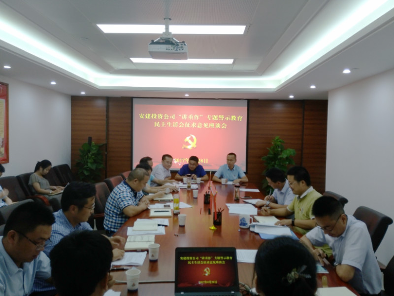 安建投资召开“讲重作”警示教育专题民主生活会征求意见座谈会