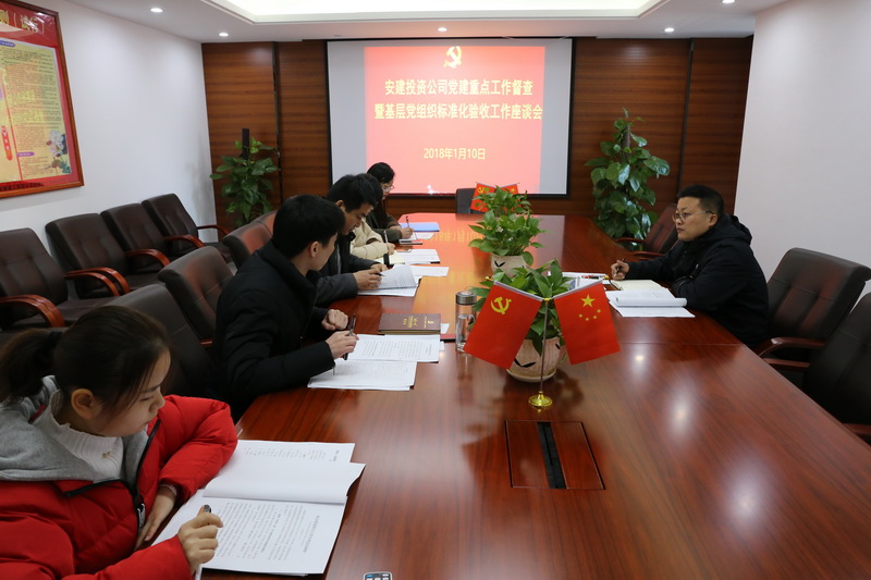 为进一步强化党建工作落实,深入了解基层党建工作进展,11月10日至11日,安建投资公司对2017年度党建重点工作进行了集中督查,对基层党组织标准化建设工作进行了督查验收。公司党总支书记、副总经理余志刚出席座谈会。