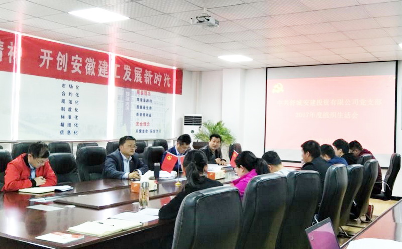 3月29日,安建投资公司舒城党支部召开2017年度组织生活会。会议由舒城安建投资有限公司董事长、总经理,党支部书记杨军主持。联系点领导安建投资公司党总支书记、副总经理余志刚以普通党员身份列席参加此次会议。