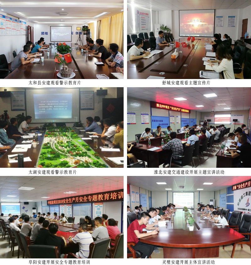 截至目前,安建投资“安全生产月”已按方案要求,完成了一、二阶段的相关活动,各项目公司安全生产宣贯周、安全生产事故警示教育周活动已相继开展,各项目深入宣贯党的十九大精神和习近平总书记关于安全生产的新思想、新理论、新战略,深入学习《安全生产法》、《安徽省安全生产条例》等法律法规及集团安全生产管理文件。针对公司2018年安全工作重点,所属各项目公司陆续开展了安全生产攻坚行动,强化事故警示教育,开展安全教育培训,集中观看了警示教育片和主题宣传片。