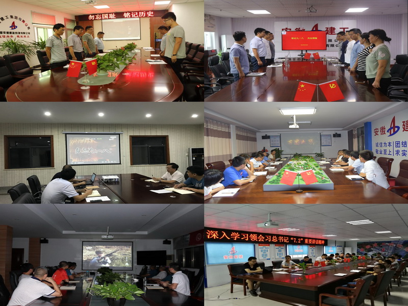 9月18日上午,公司机关及所属项目公司通过组织向在“九一八”事变中牺牲的同胞和革命先烈默哀悼念,以观看纪录片《勿忘九一八》、《铁血江桥》等形式,深切缅怀抗战烈士,共同回顾中华民族的那段苦难历史,深刻感受革命先烈不畏艰苦、勇赴国难的爱国主义精神。淮北安建交通建设有限公司还就纪录片内容及前不久组织开展的慰问老兵活动举行座谈。阜阳安建建设管理有限公司结合纪念“九一八”活动,组织团员青年深入学习领会习近平总书记“7.2”重要讲话精神,深入领会党中央和团中央对广大青年的殷切期盼,深刻感受团员青年身负的历史使命。