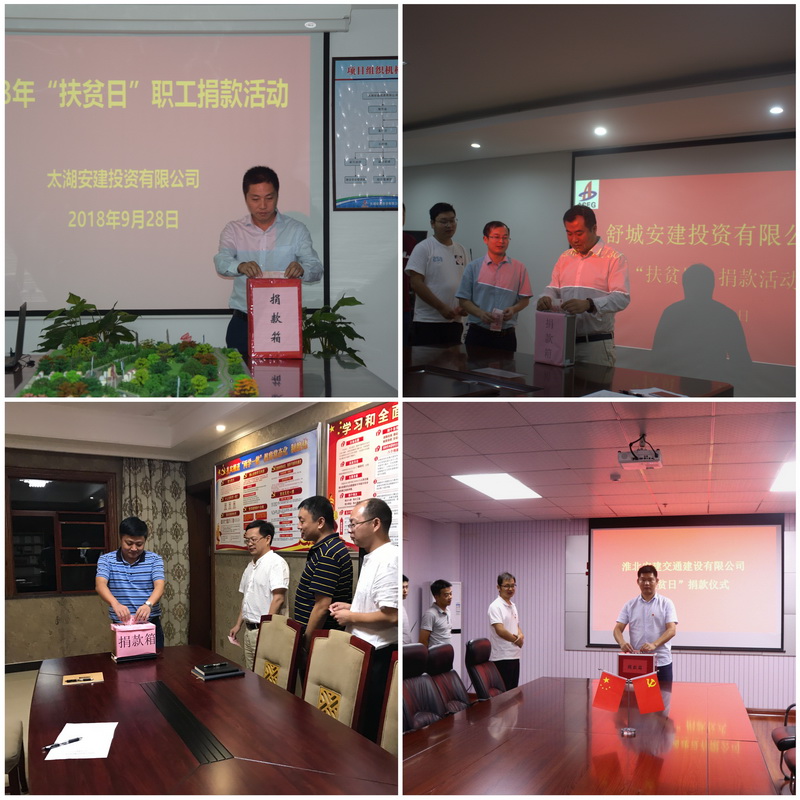 今年的10月17日是我国第5个“扶贫日”,设立“扶贫日”充分体现了党中央、国务院对扶贫开发工作的高度重视,也是继续向贫困宣战的一个重要的举措。根据集团公司工会《关于组织开展2018年“扶贫日”职工捐款活动的通知》文件精神,连日来,安建投资公司组织开展了“扶贫日”爱心捐款活动。公司机关及所属各项目公司积极响应,主动参与了募捐。