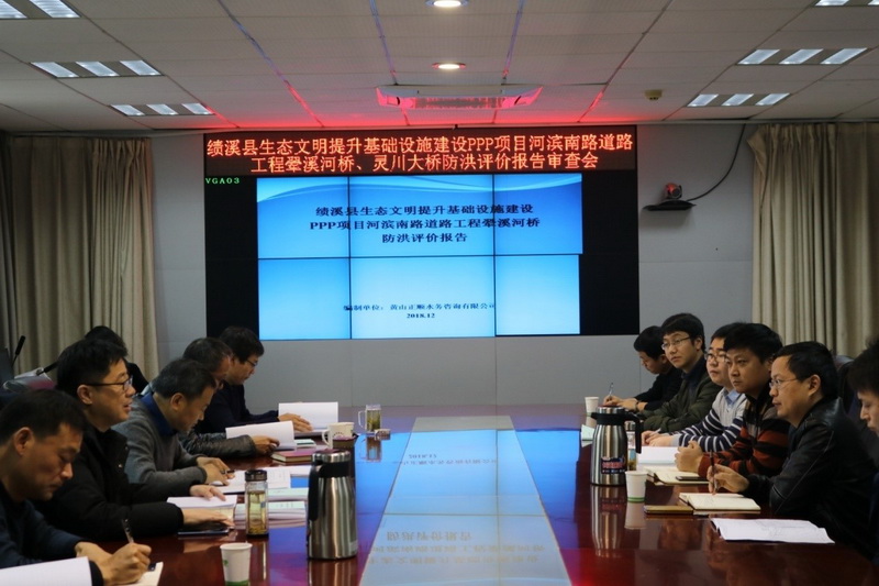 开工仪式后,绩溪安建相关负责人陪同防洪评价专家组深入河滨南路翚溪河桥和灵川大桥现场进行勘查,并召开防洪评价报告审查会,绩溪安建总工程师陈银就项目概况和防洪报告有关内容作详细汇报。专家组成员就报告内容充分讨论并一致同意通过防洪评价报告,为后续各项工作的开展奠定良好的基础。