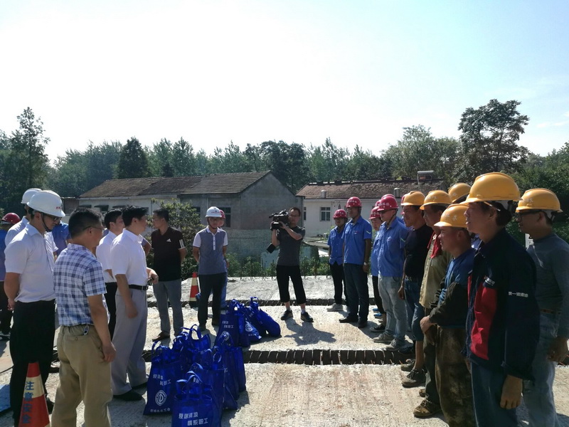 入伏以来,骄阳似火,高温不断。为确保一线工人生命安全, 7月18日,舒城安建夏送清凉慰问活动同步展开。舒城安建总经理杨军,副总经理周忠参与慰问并深入查看了施工人员居住情况,排除用电隐患,为G206(舒城段)改建工程PPP项目安全施工做好保障工作。