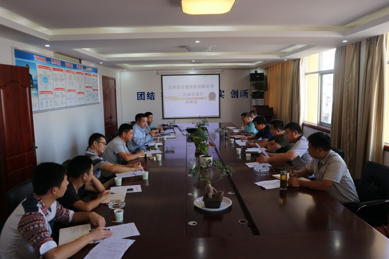 9月7日,太和县安建投资有限公司召开二次深化设计工作对接会,就设计变更工作进行对接和沟通。太和县重点工程建设管理局副局长张峰、太和县经济开发区规划局局长曹之光出席会议。太和县安建投资有限公司总经理高伟、安徽二建太和PPP项目经理部等有关人员参加会议。
