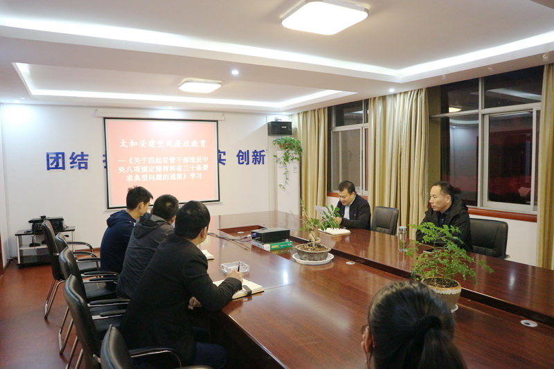 10月16日,中共太和安建投资有限公司联合党支部组织开展党风廉政教育,项目公司全体员工参加活动。