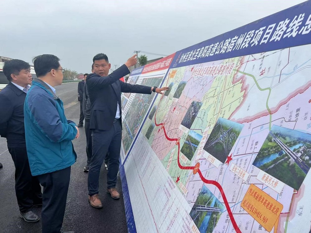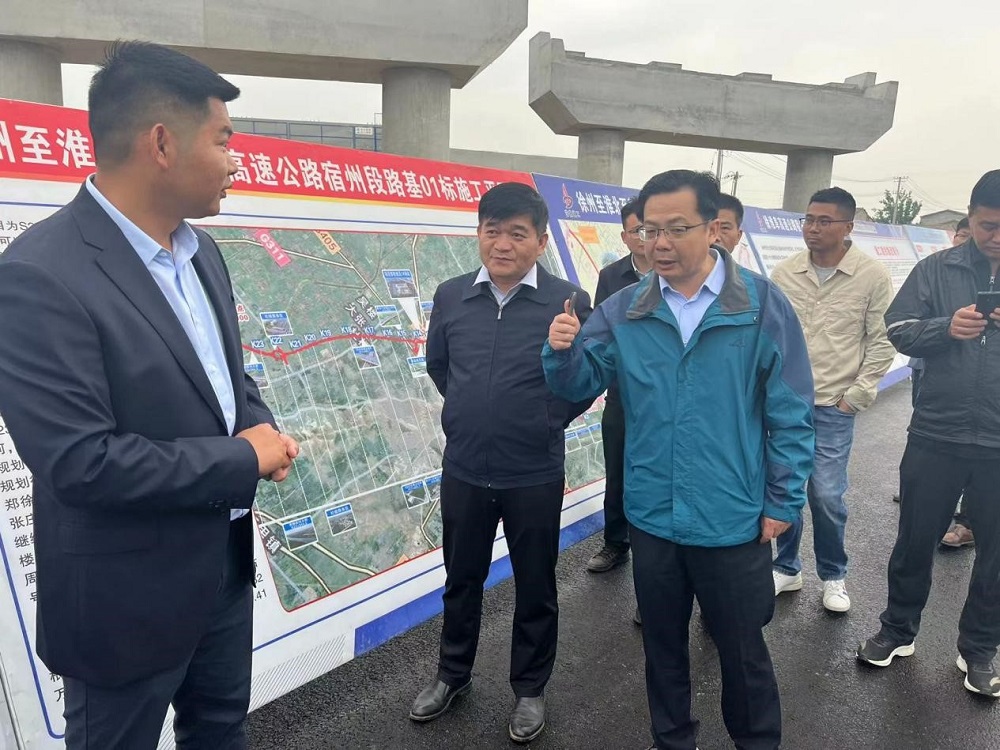 萧县县委书记罗圣权“五一”期间到建工投资徐淮阜高速公路宿州段项目调研