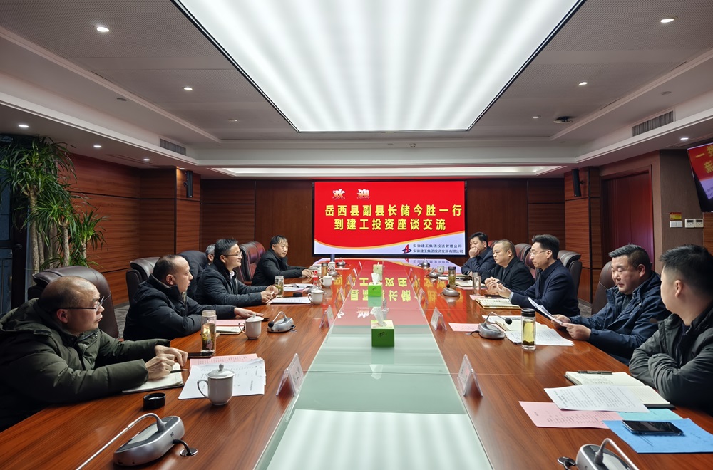 2025年1月9日下午,岳西县副县长储今胜一行到访建工投资公司,公司党委书记、总经理谢洪兵热情接待并主持召开座谈会,双方就岳西项目有关工作开展深入交流。