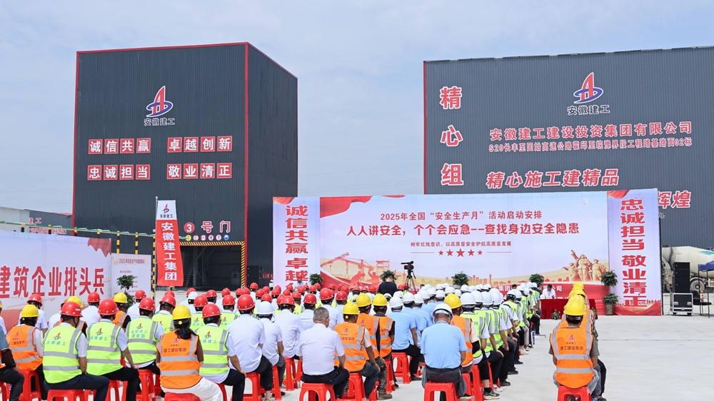6月4日上午,根据集团统一部署,建工投资公司在S20长丰至固始高速公路霍邱至皖豫界段项目现场全面启动2025年“安全生产月”活动。霍邱县交通运输局局长蔡世广,建工投资党委书记、总经理谢洪兵,建工投资党委委员、副总经理王锐、杨军及项目相关负责人出席启动仪式,所辖各项目公司、各直属项目部视频参会。