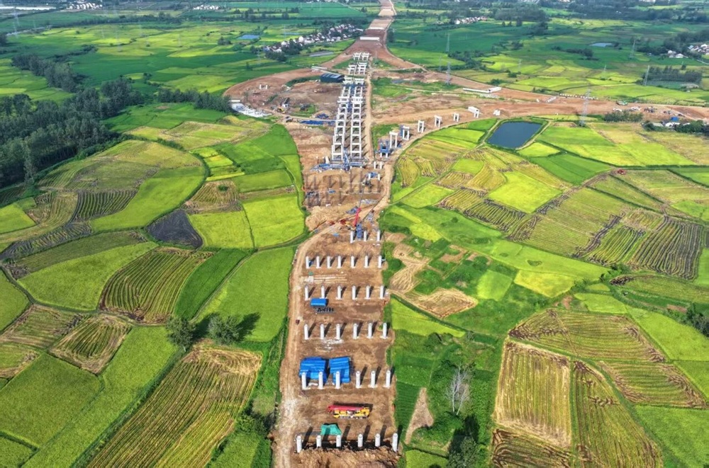 该项目全线长59.692公里,目前已进场管理人员198人、施工队伍35支共1845人,投入机械设备538台(套)。工程实体方面,累计完成桩基3338根,墩柱(下)1347根、墩柱(上)154根,预制梁511片,路基填筑169.8万m³,4%灰土填筑154.4万m³,圆管涵预制4404节,箱型涵洞及通道预制7964m³。城东湖特大桥首件柱系梁已顺利浇筑,标志该桥主体结构施工正式启动。